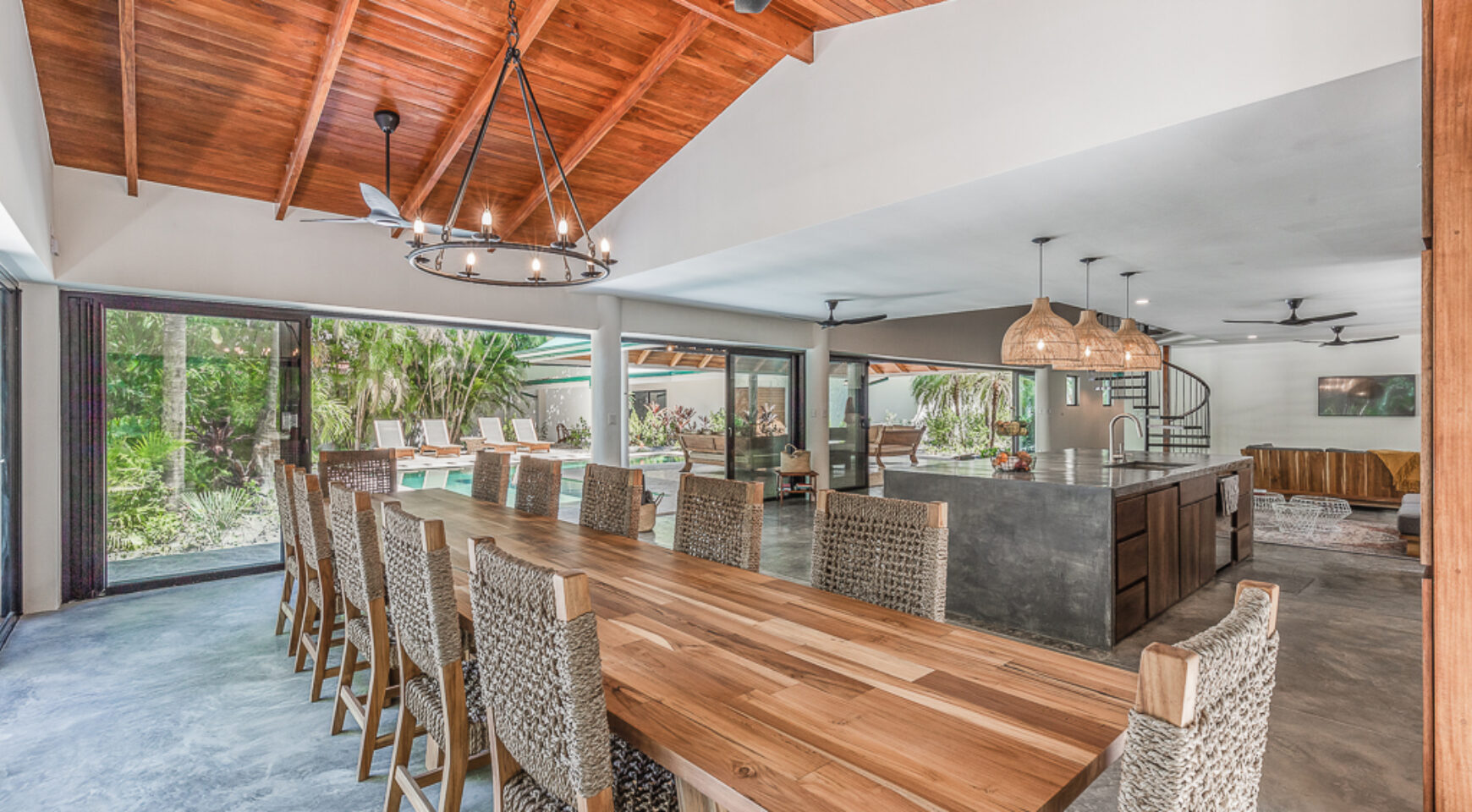 7 bedrooms, 6 full bathrooms, sleeps 14, saltwater pool, open-air yoga studio, chef’s kitchen, and much more! Quiet area but close to great restaurants, shops, yoga, and more.