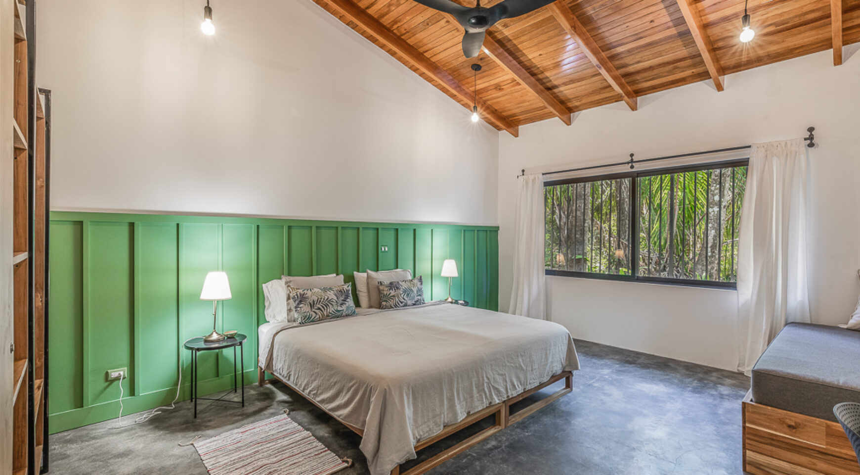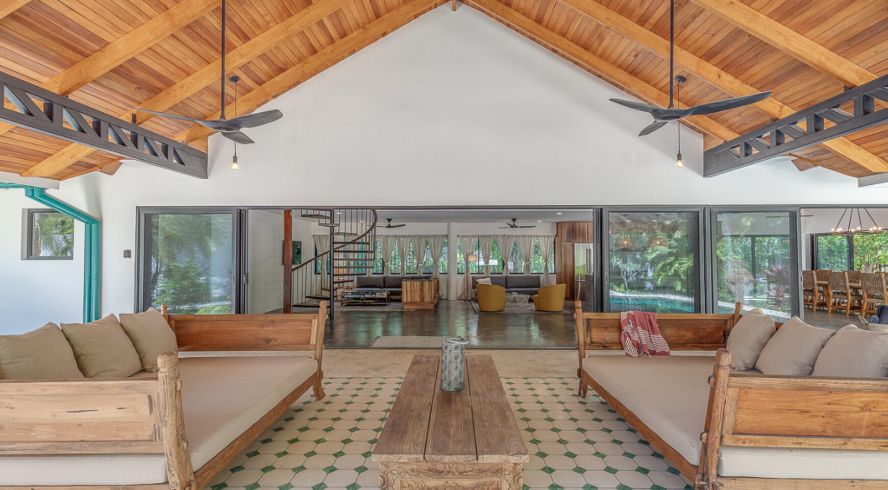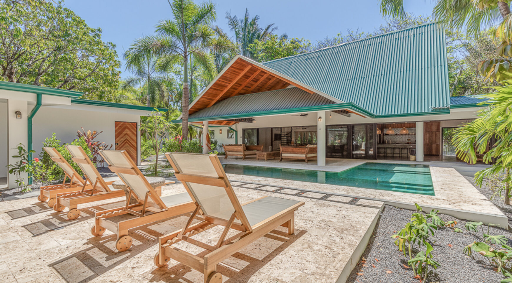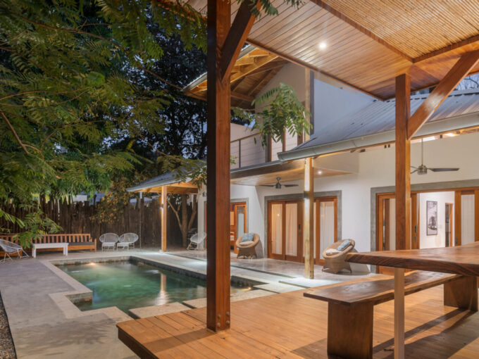 The villa is set on a beautiful property full of mature trees (including mango trees!) as close as you can get to Playa Guiones in Nosara. Consists of: