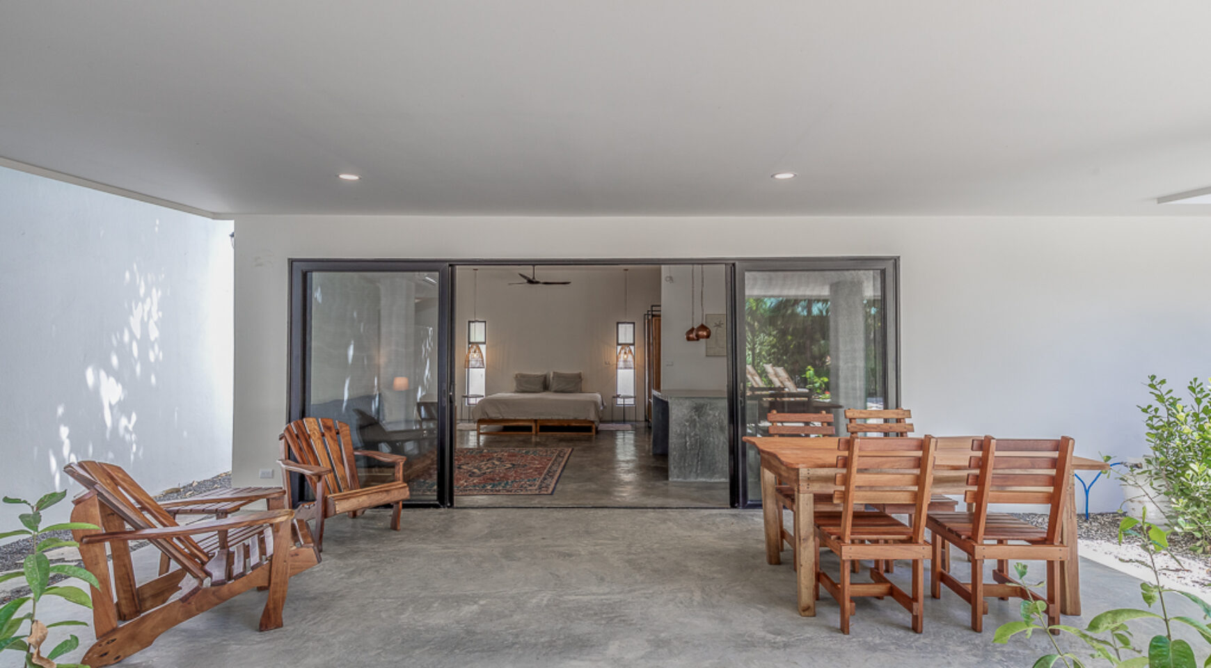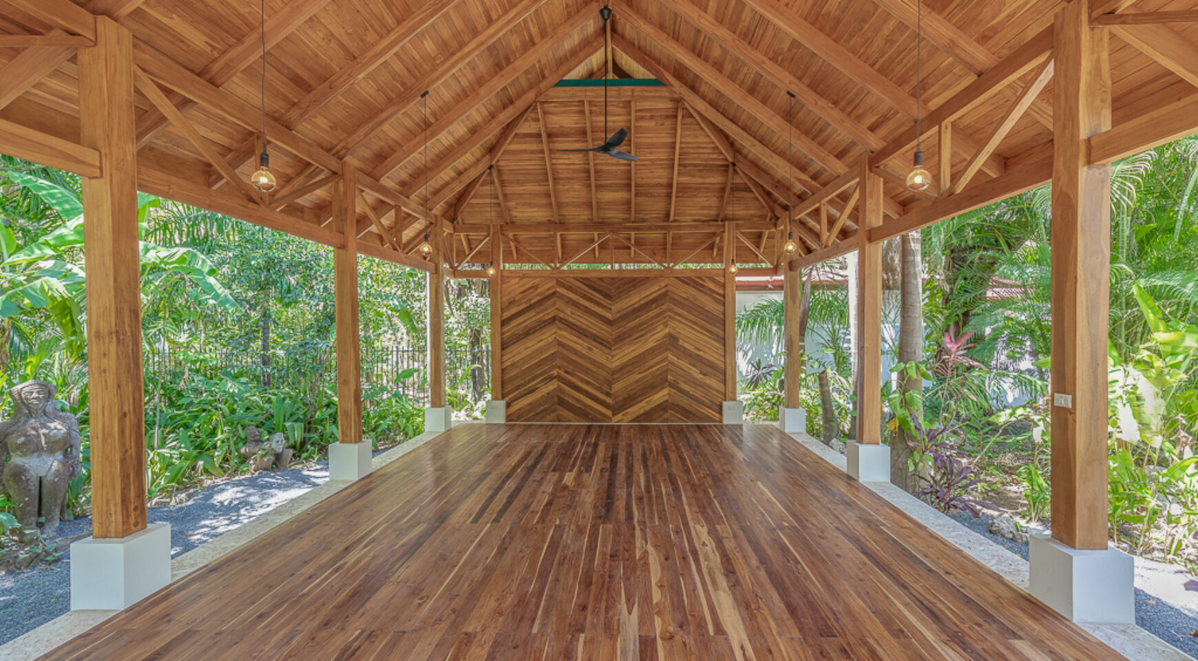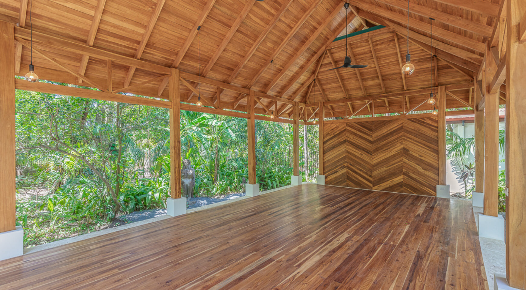 – Outdoor covered open-air yoga shala with room for up to 15 people to practice together