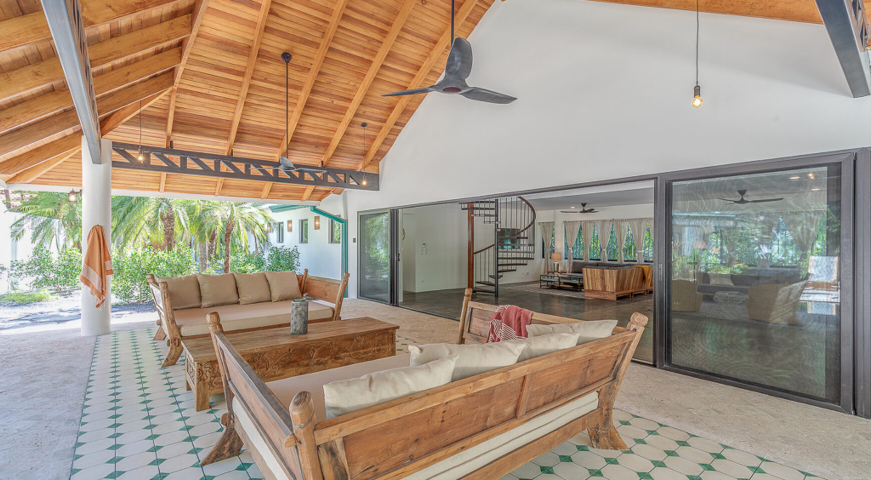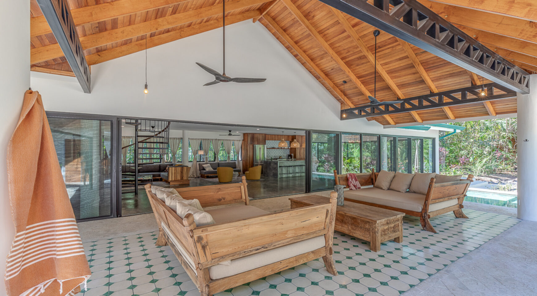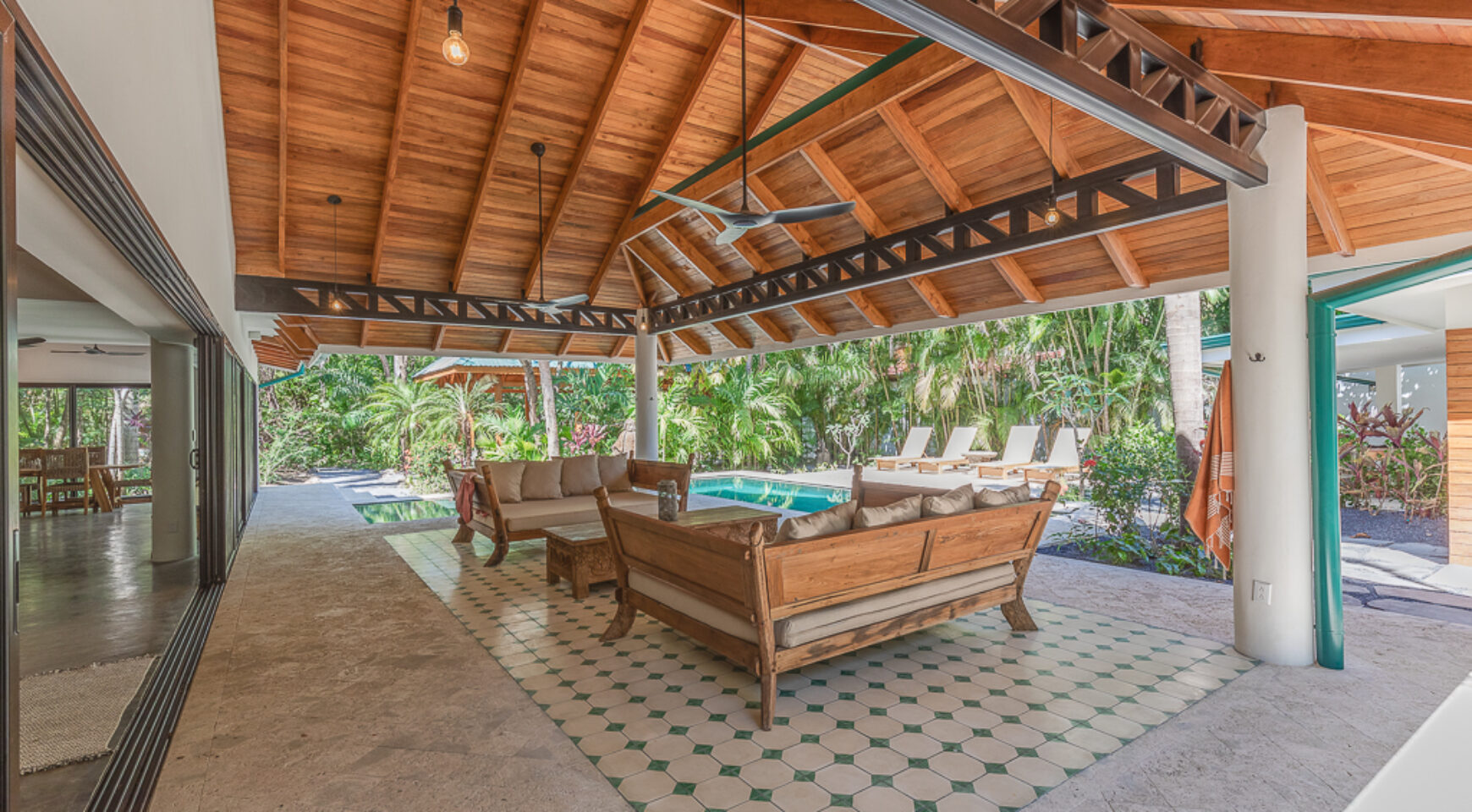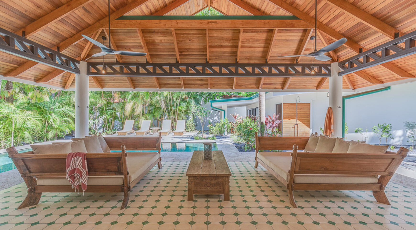– Outdoor covered lounge with daybeds