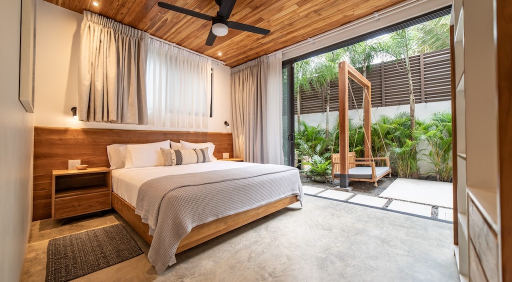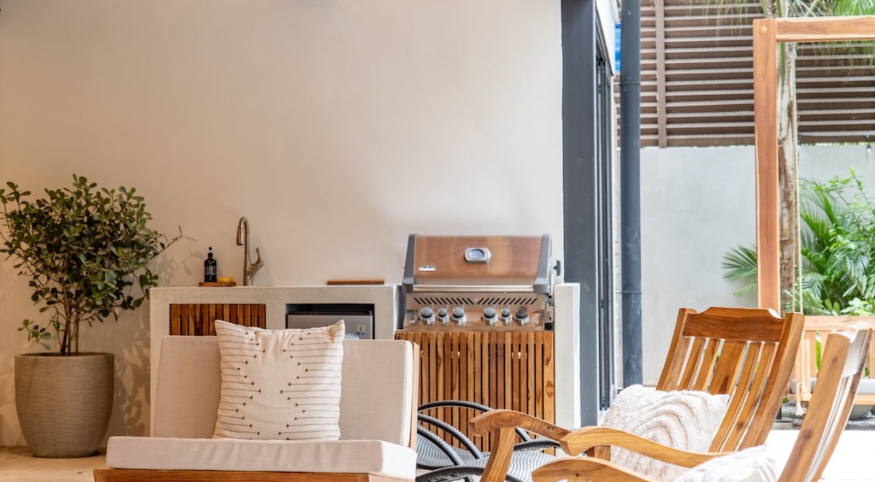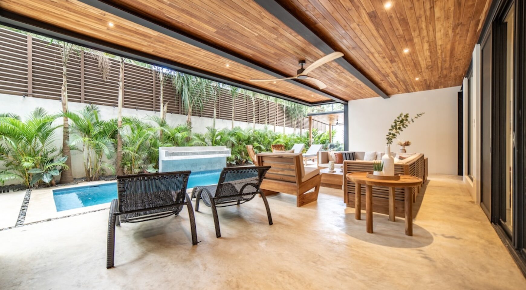 Expansive Private Pool & Gardens: One of the only properties in the neighborhood with a pool, Casa Bergamot features a serene, resort-style pool with a waterfall, two sun decks, lush tropical landscaping, and a custom-designed swing chair. Guests can relax in complete privacy as monkeys swing through the trees and exotic birds fly overhead.