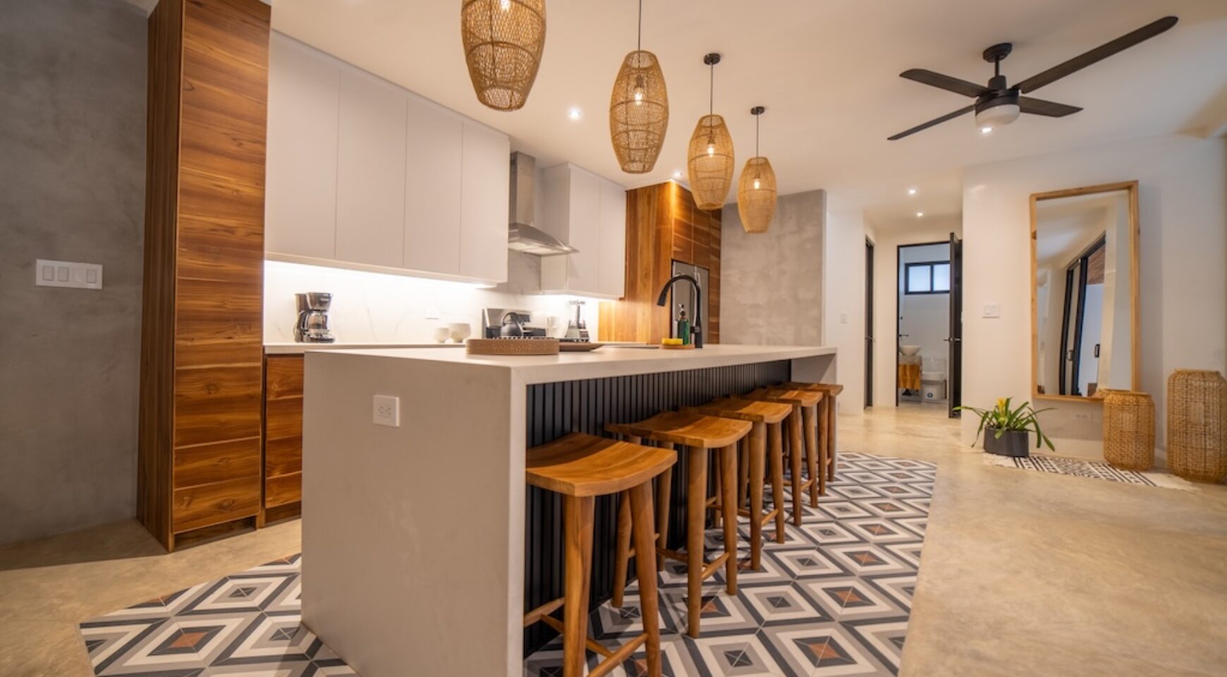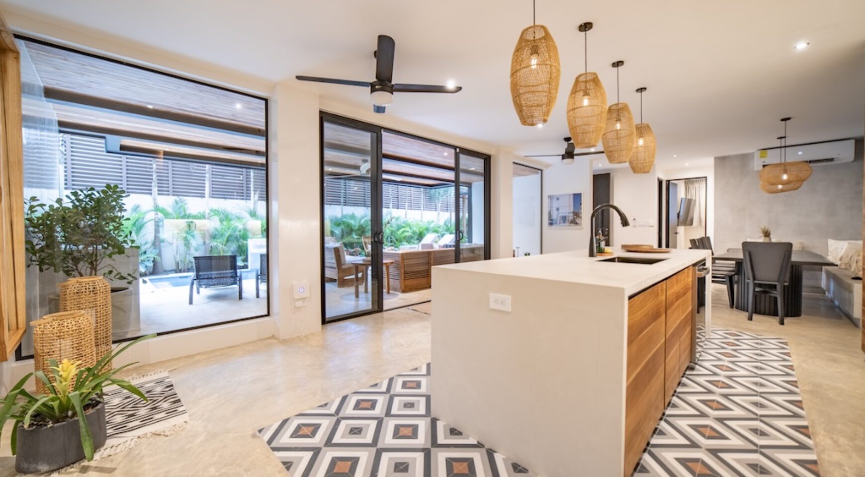 Elegant Custom Interiors: Casa Bergamot showcases beautifully appointed, brand-new furnishings, including custom-fabricated pieces, luxurious loungers, and designer touches throughout the home.