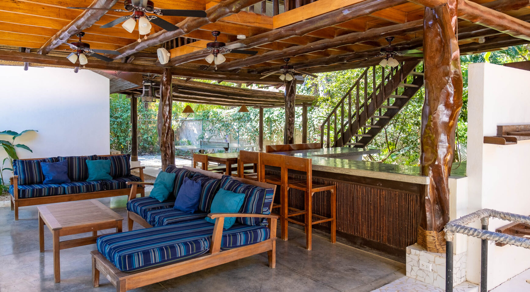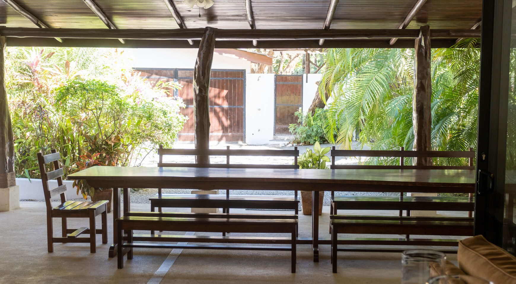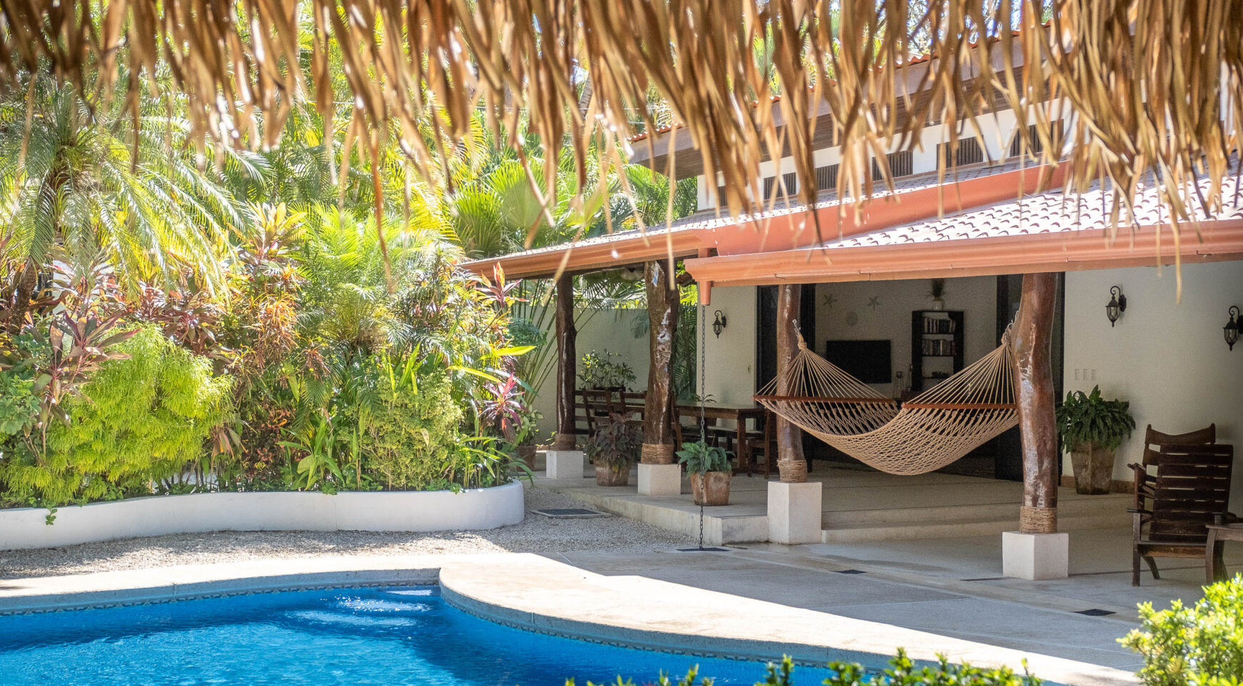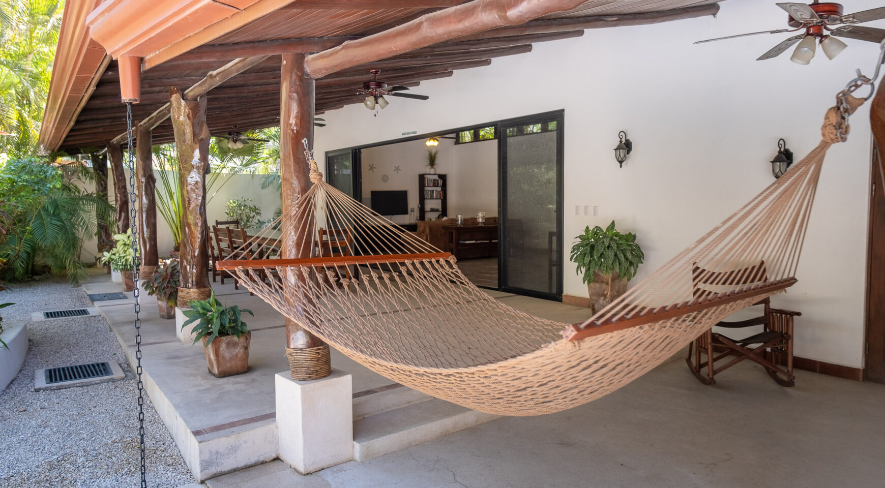 Unwind in one of two hammocks, float in the pool, challenge your friends to a game of ping pong, or drift into a well-deserved nap in the breezy Rancho. Lounge poolside while monkeys swing playfully through the trees above you. Just a short two-minute stroll brings you to a stunning, protected beach—perfect for surfing, long walks, or a morning run. Each bedroom at Casa Cristal de Mar features a private entrance off the patio, offering total privacy for guests. Ideal for four couples or two families traveling together. The property is fully surrounded and beautifully landscaped with lush gardens for maximum privacy. A secure closet and individual mini safes in each bedroom offer added peace of mind.