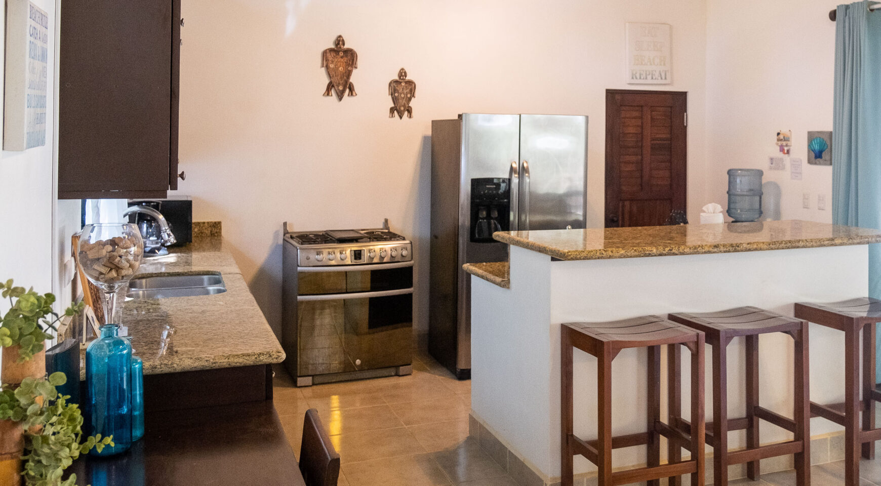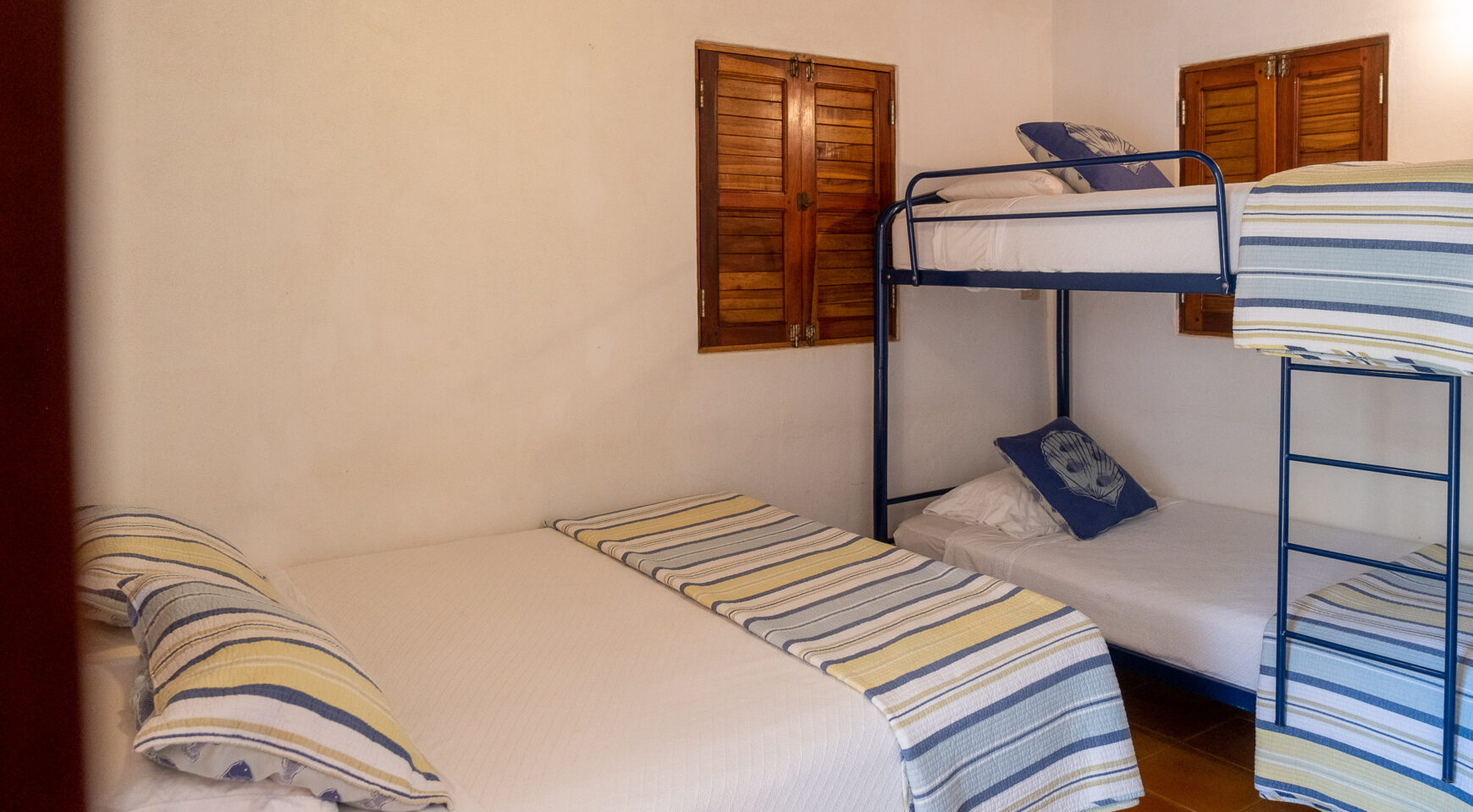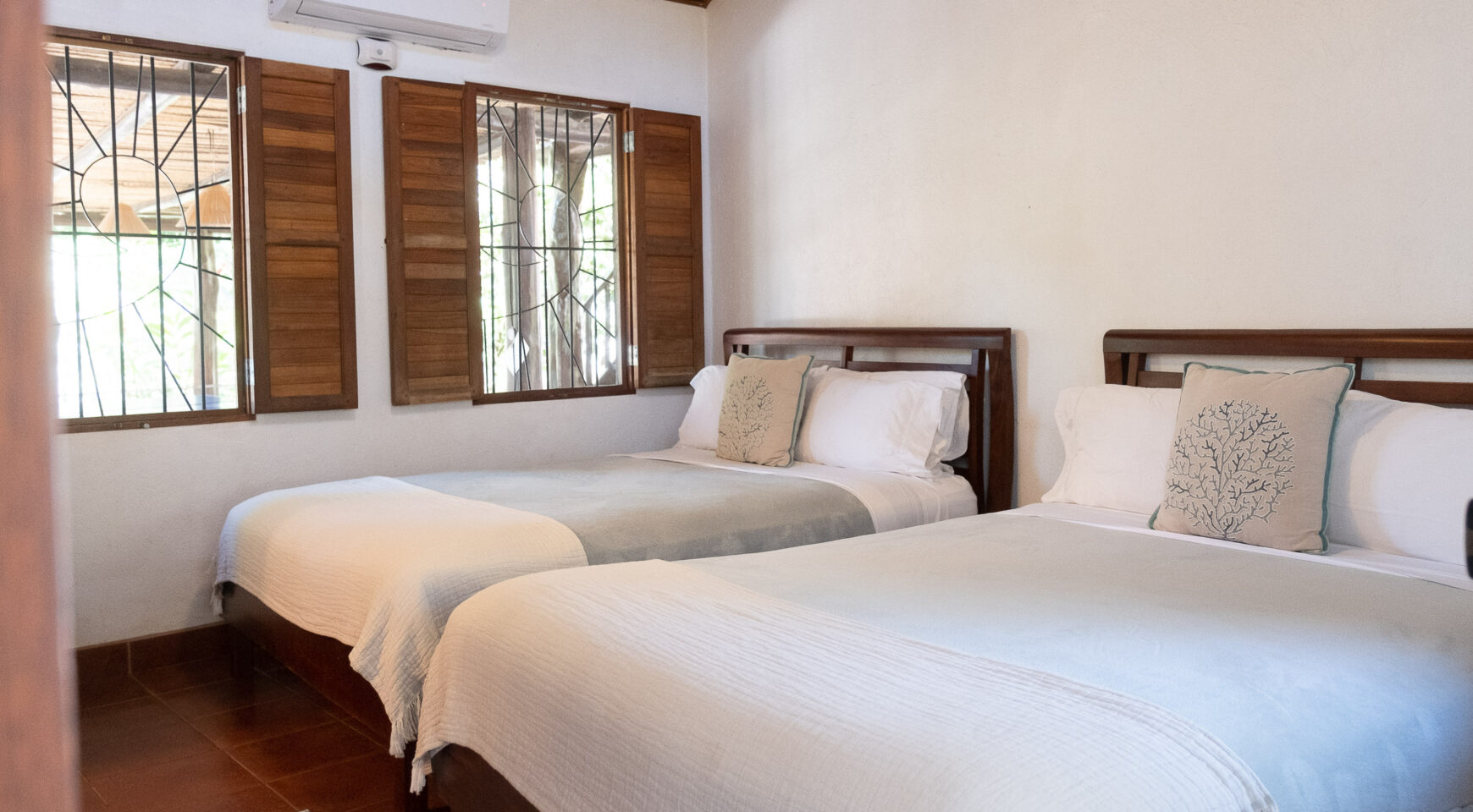 Casa Cristal de Mar offers four spacious bedrooms, each with two queen beds, a private en-suite bathroom, air conditioning, and a private entrance off the patio, ensuring maximum comfort and privacy for every guest. It’s the ideal setup for four couples or two families traveling together.