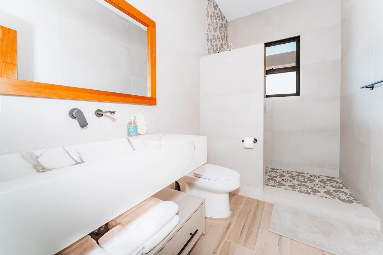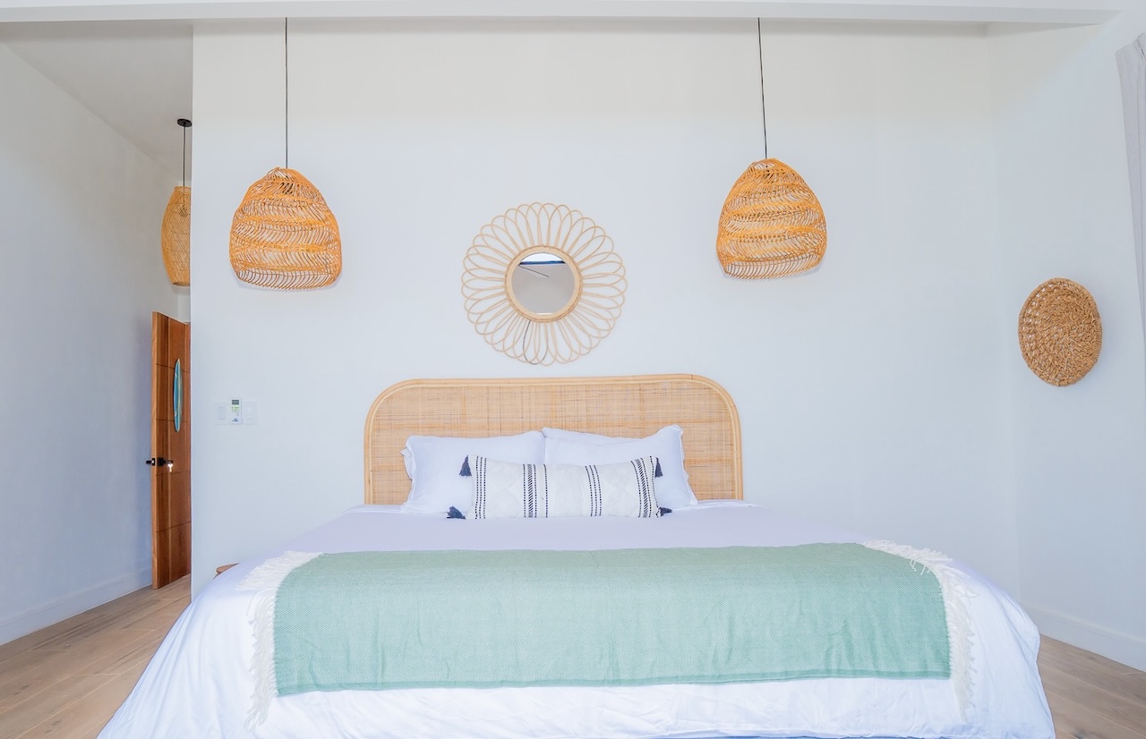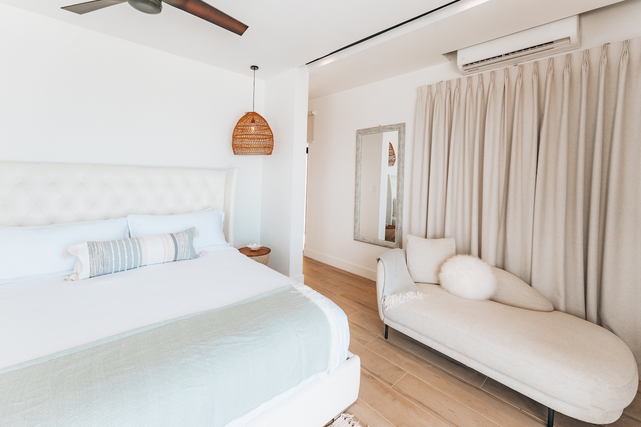 Natural light, soft breezes, and serene energy flow through every space. Decorated in neutral tones with natural fabrics, the villa’s design is elegant, spa-like, and in tune with its surroundings. The bathrooms feature beautiful porcelain finishes and Moroccan-inspired tile. The entire first floor opens seamlessly to the outdoors, all on one level for ease and accessibility.