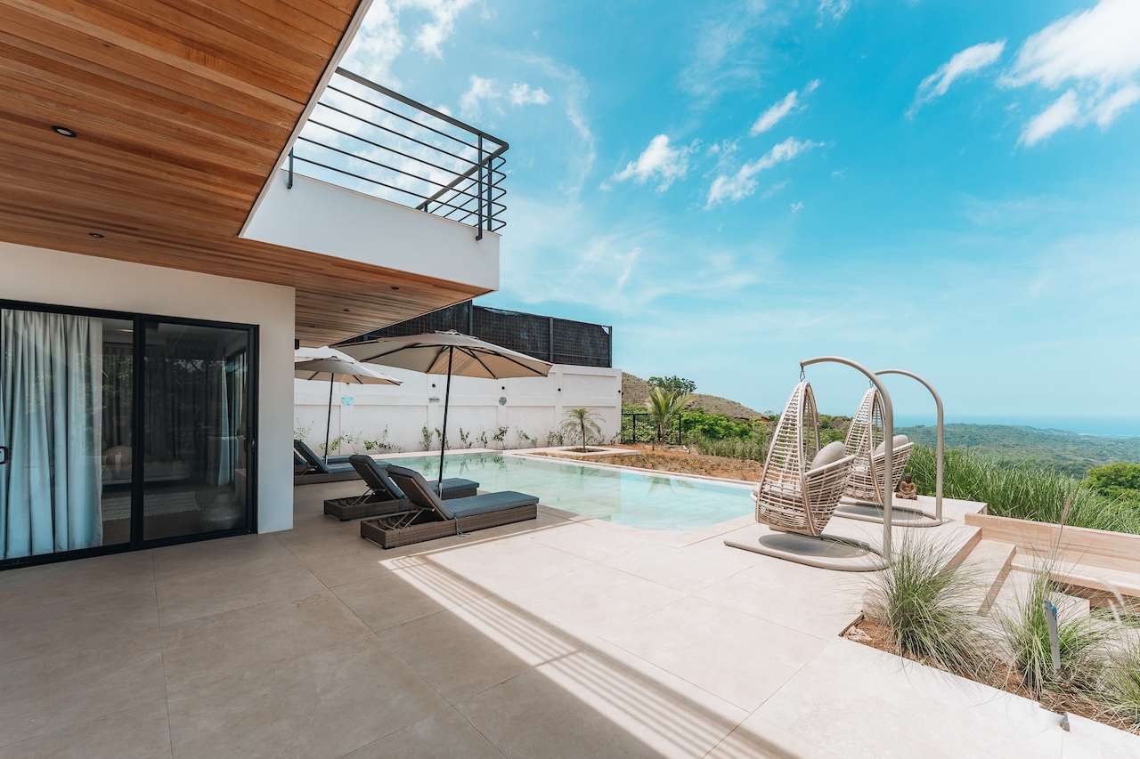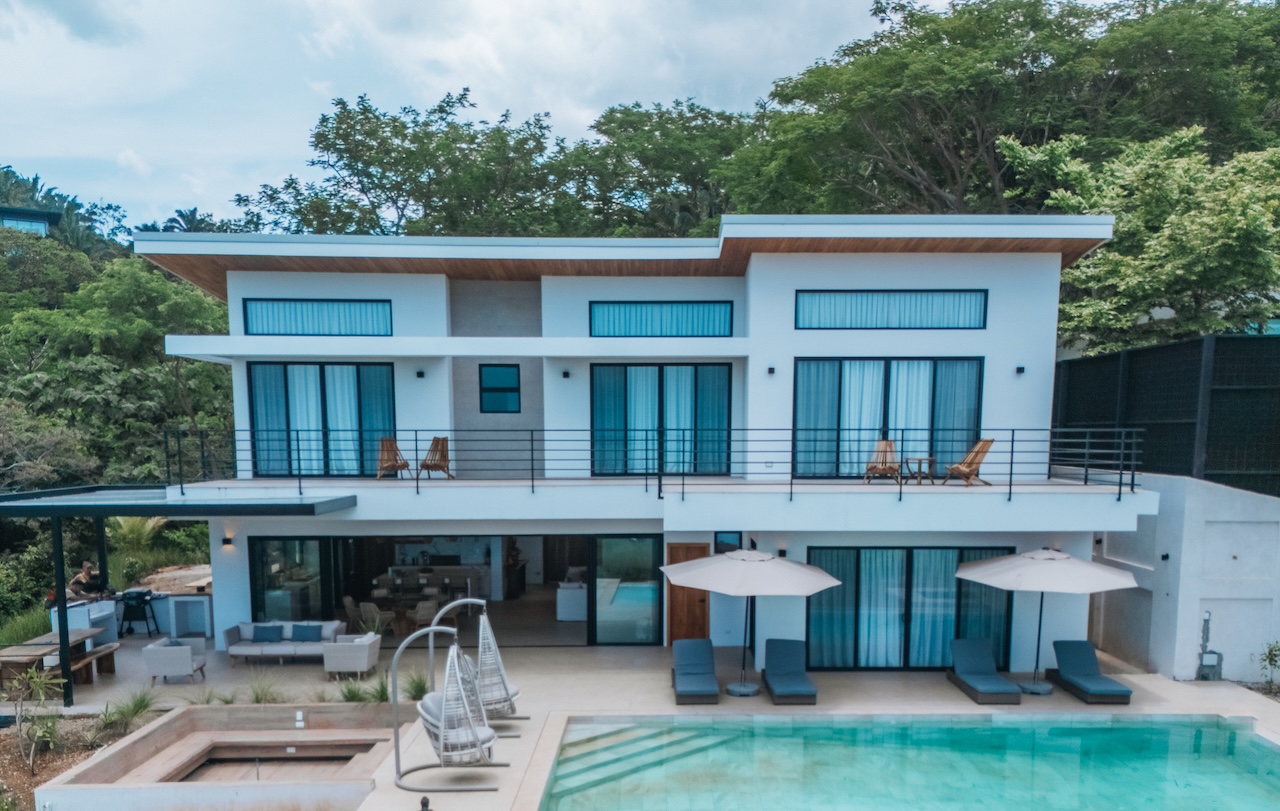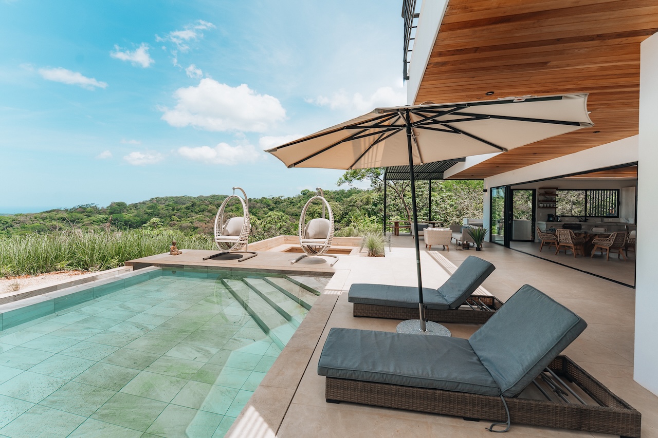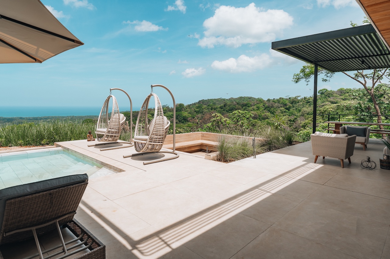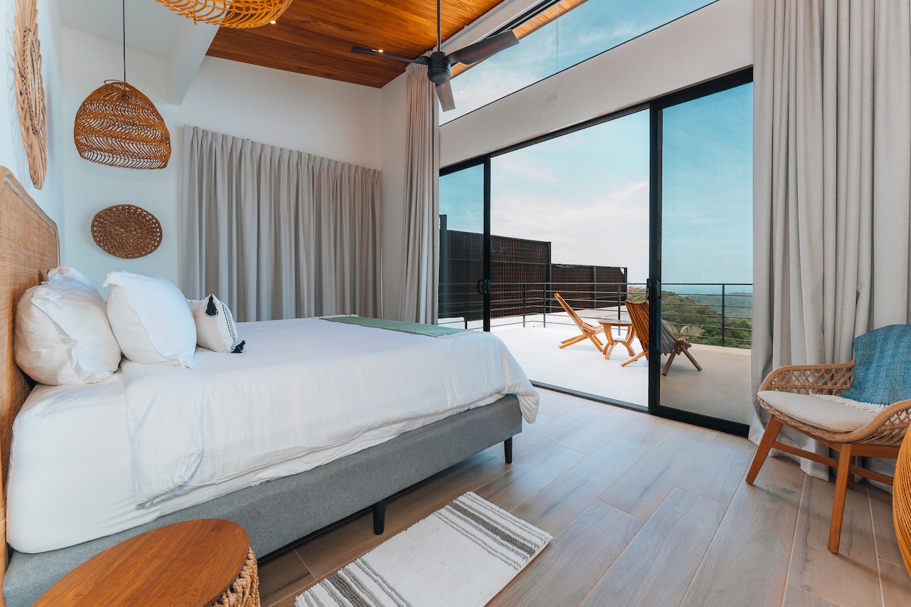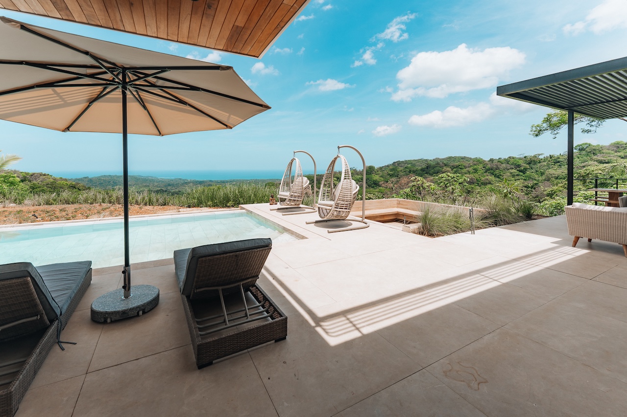 Gorgeous new 5BR home in Nosara Estates with stunning ocean and jungle views from every room. Wake up to birdsong and relax in spa-like comfort with family and friends. Enjoy unforgettable sunsets, cool mountain breezes, and total privacy. The perfect retreat after a day of adventure. Located up a mountain; 4×4 or AWD vehicle required. Experience the best of nature, peace, and modern luxury in this serene getaway.