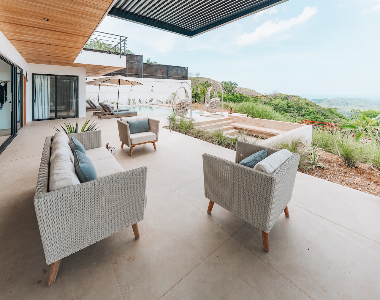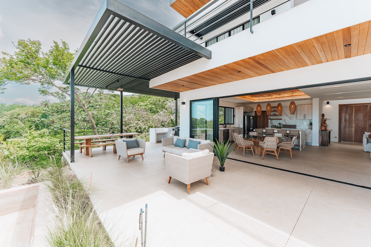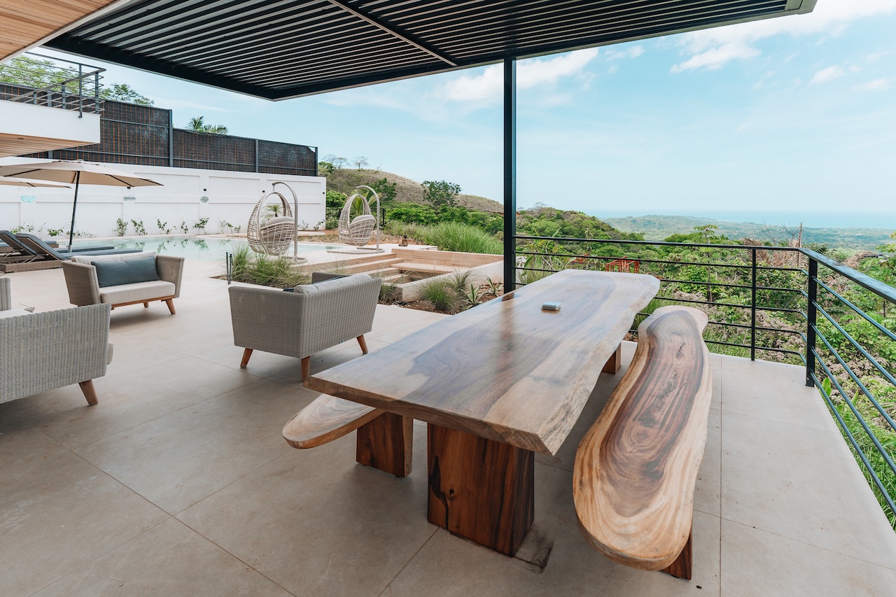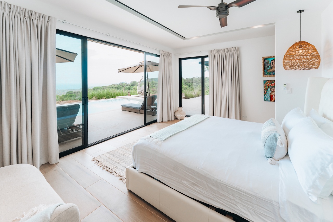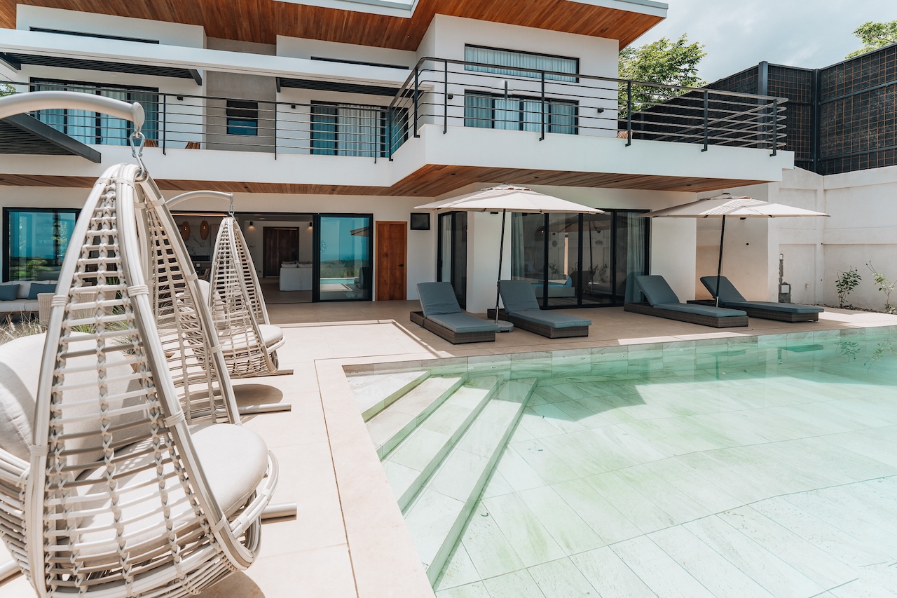Gorgeous new 5BR home in Nosara Estates with stunning ocean and jungle views from every room. Wake up to birdsong and relax in spa-like comfort with family and friends. Enjoy unforgettable sunsets, cool mountain breezes, and total privacy. The perfect retreat after a day of adventure. Located up a mountain; 4×4 or AWD vehicle required. Experience the best of nature, peace, and modern luxury in this serene getaway.