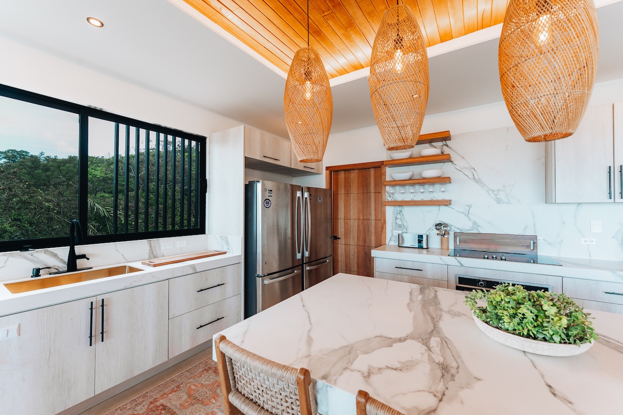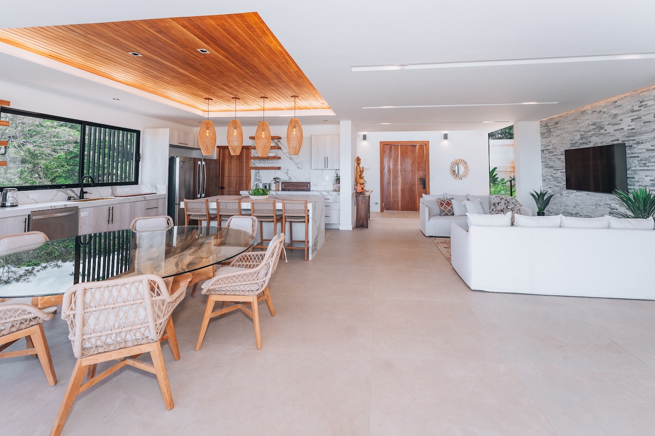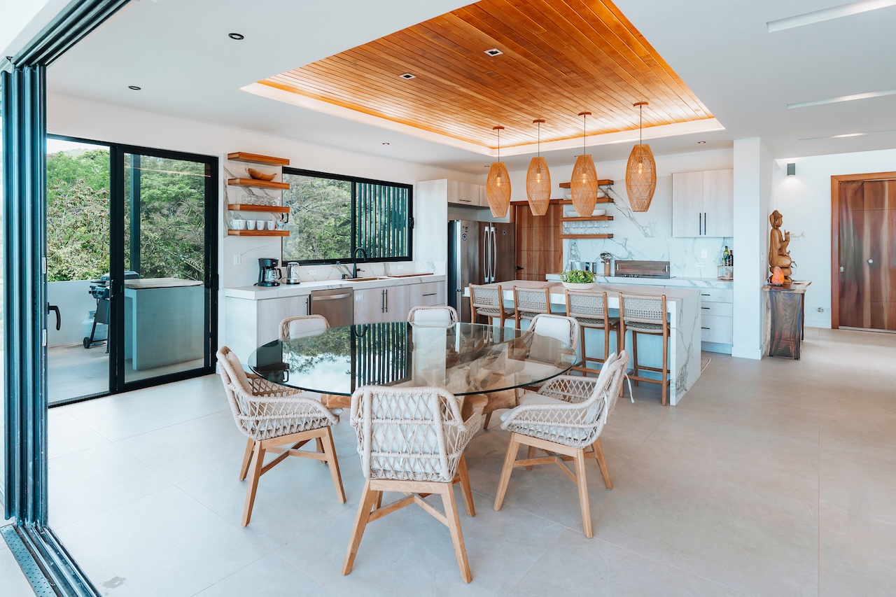 La Dulce Villa is located in the tranquil Nosara Estates community, just 4 miles from Garza’s quaint fishing beach and 12 miles to Guiones, where you’ll find surf shops, yoga studios, restaurants, and markets. A 4×4 SUV or all-wheel-drive vehicle is strongly recommended for the mountain road.