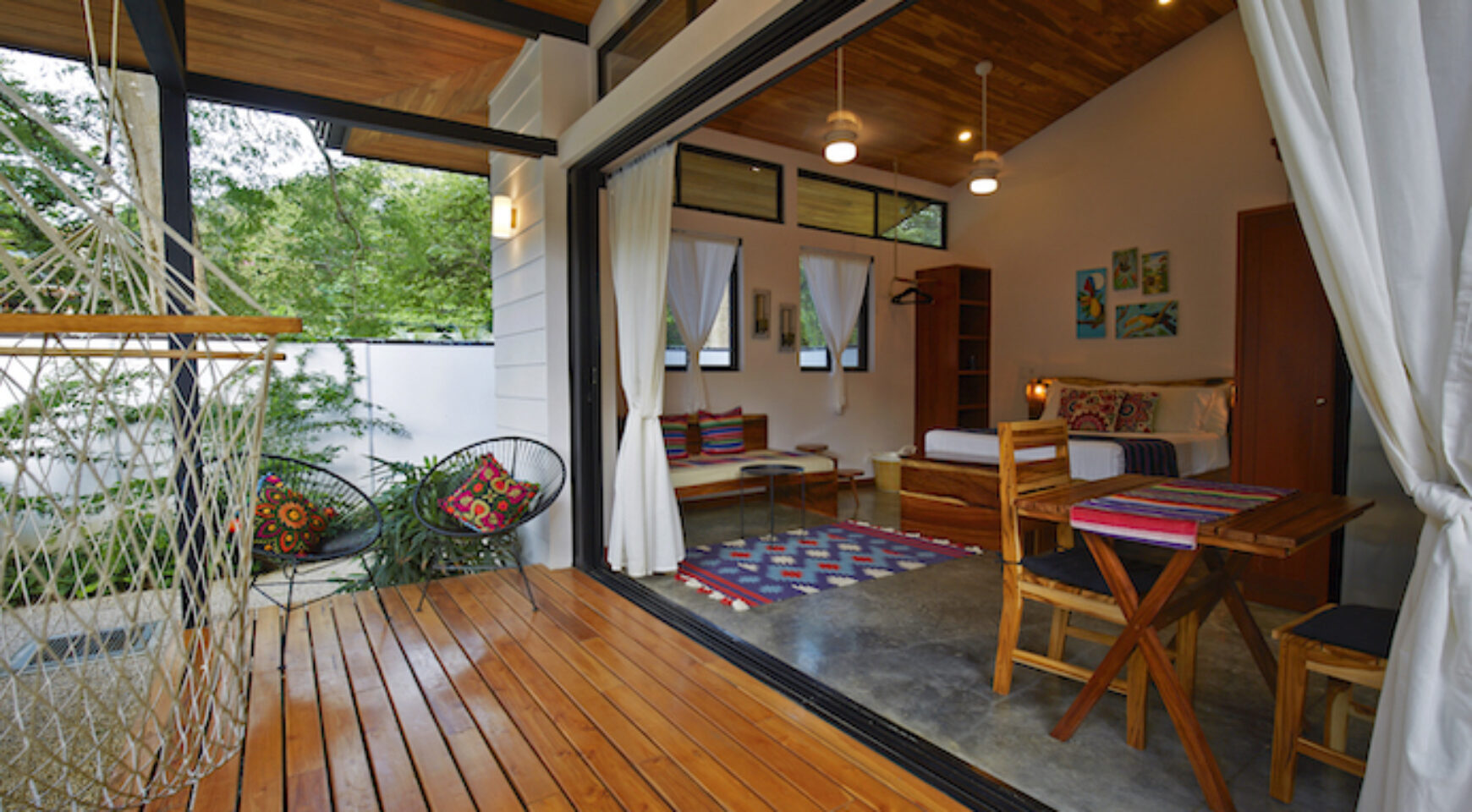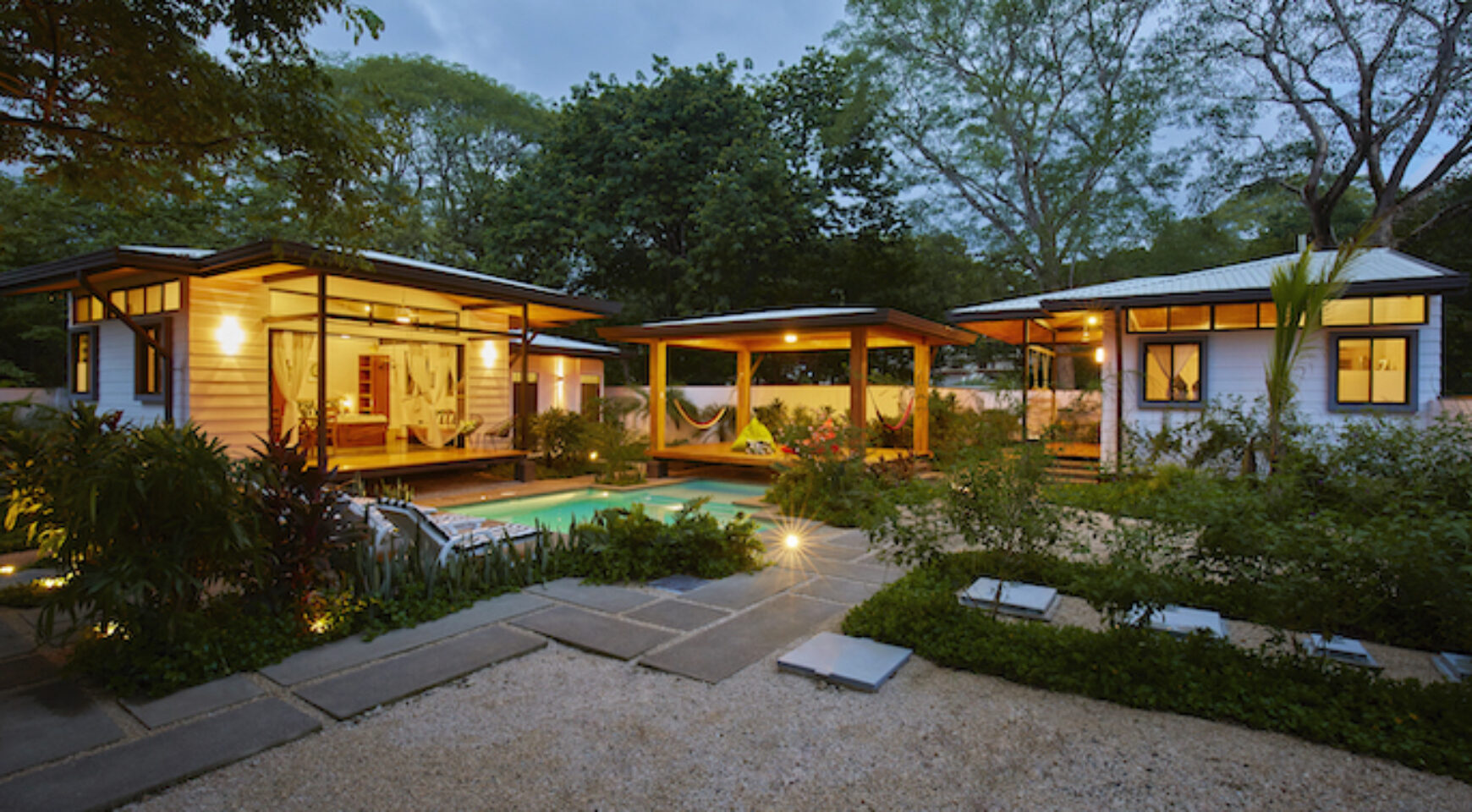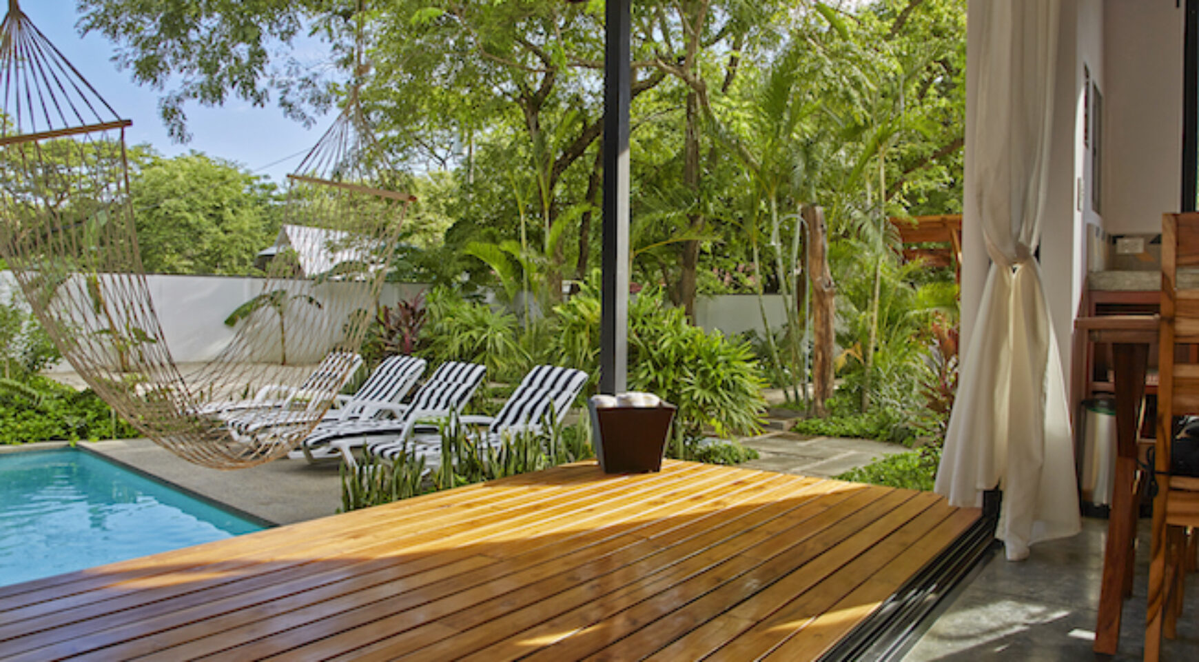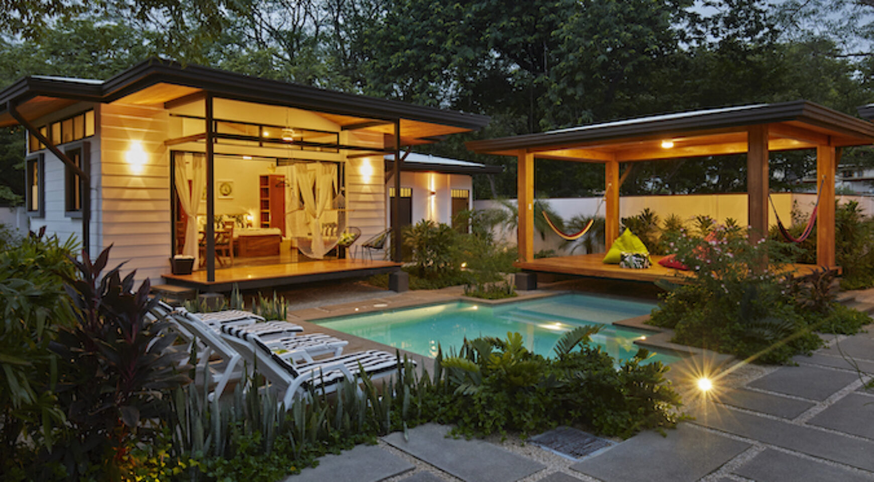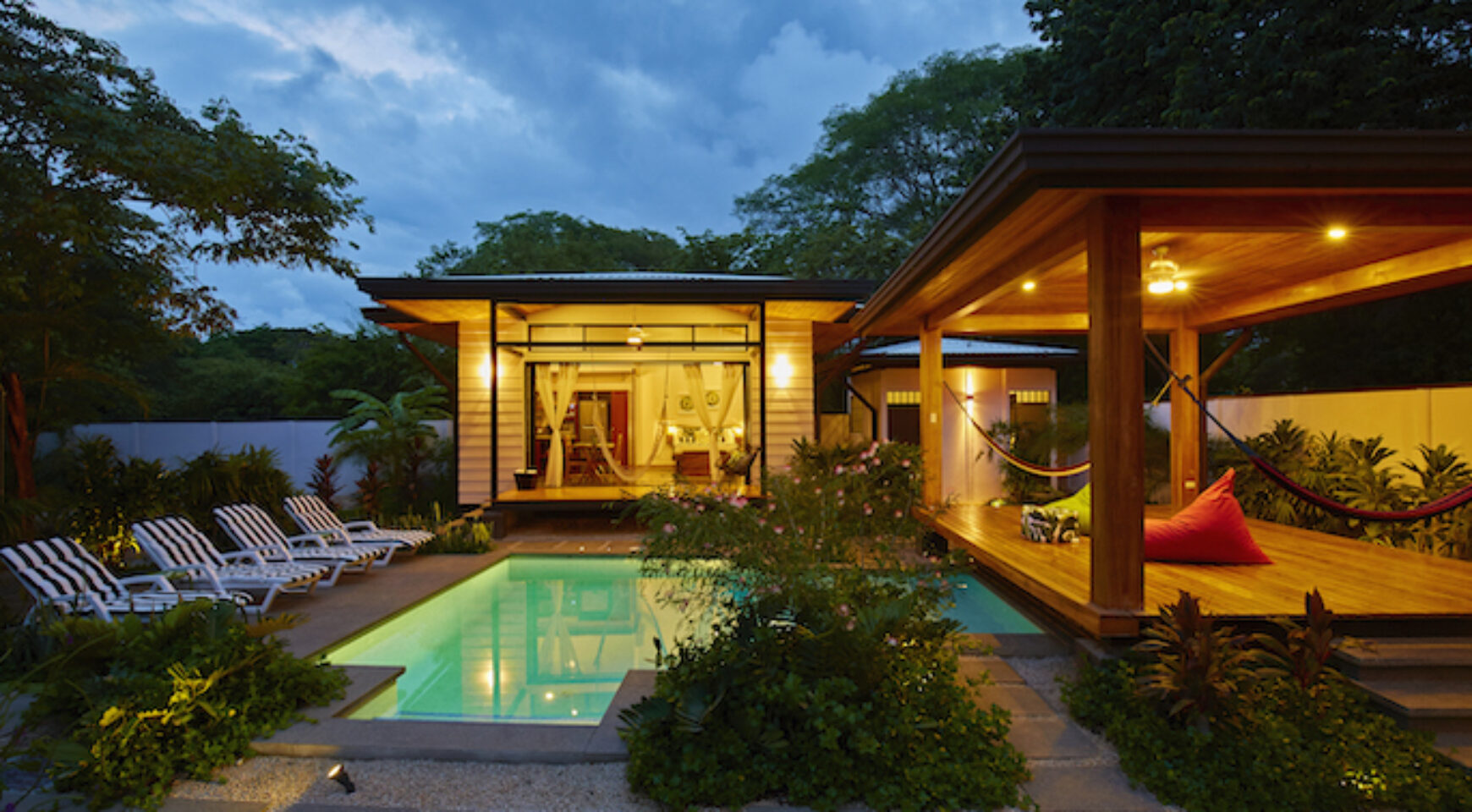 Discover Costa Rica’ Pura Vida lifestyle in the charming brand-new Lily Pad property. We offer two independent bungalow style studios with covered outdoor patio overlooking the swimming pool and yoga deck. Our lush property Lily Pad Nosara is conveniently located just a short walk from the beach, local restaurants and surf.