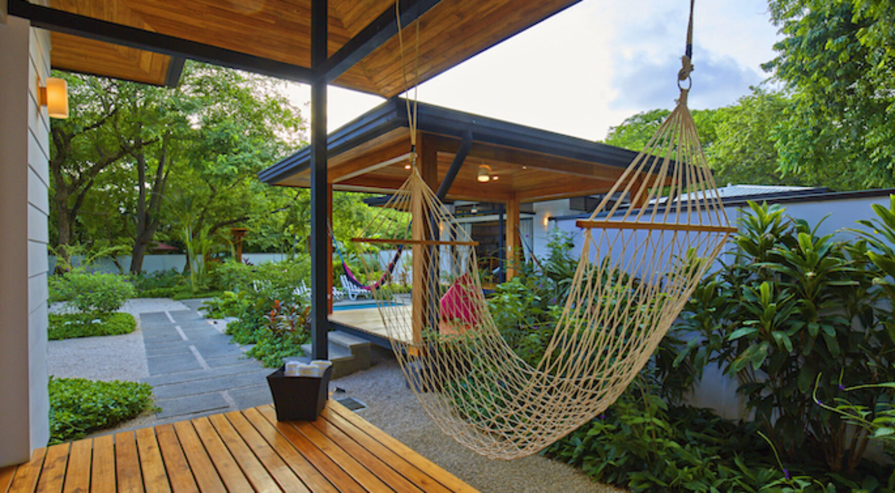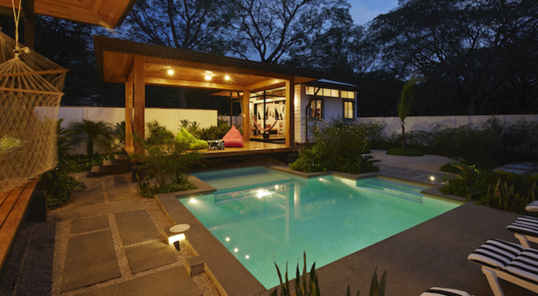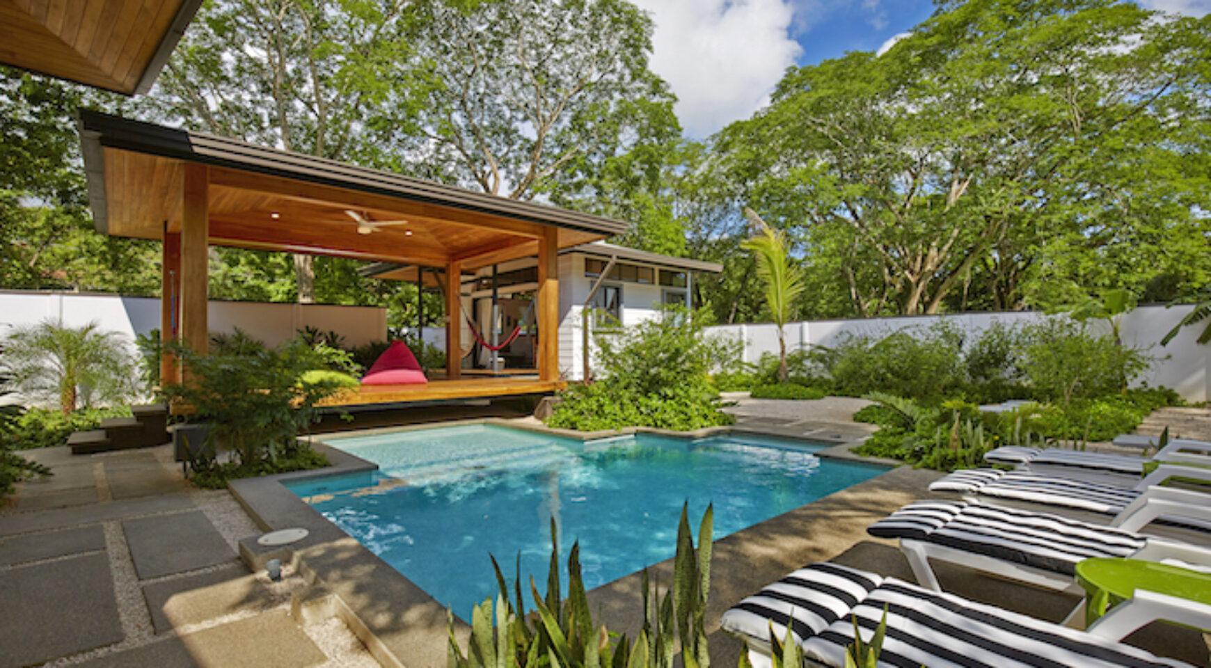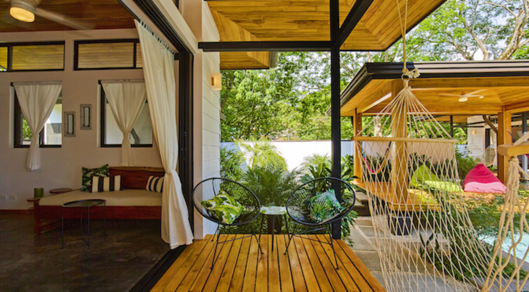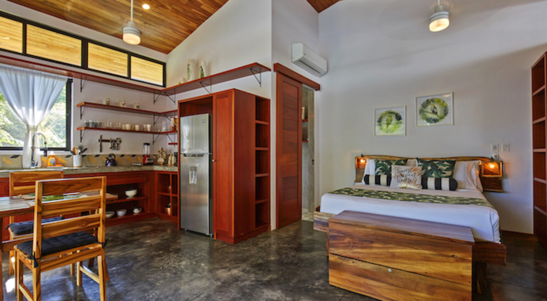 Discover Costa Rica’ Pura Vida lifestyle in the charming brand-new Lily Pad property. We offer two independent bungalow style studios with covered outdoor patio overlooking the swimming pool and yoga deck. Our lush property Lily Pad Nosara is conveniently located just a short walk from the beach, local restaurants and surf.