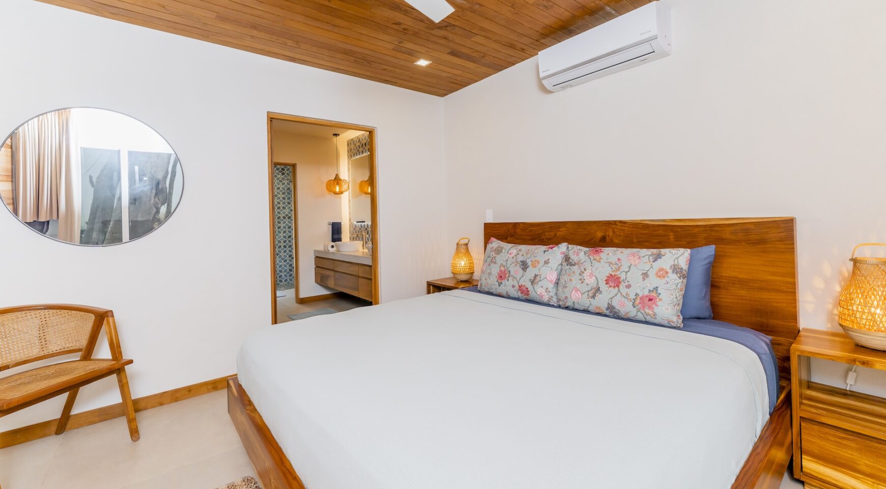 Each bedroom is a sanctuary of comfort, with plush beds, air conditioning, and tasteful bedding to ensure a restful night’s sleep. The master suite includes an en-suite bathroom and walking closet, offering privacy and convenience.