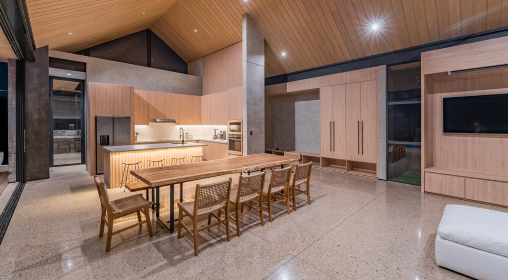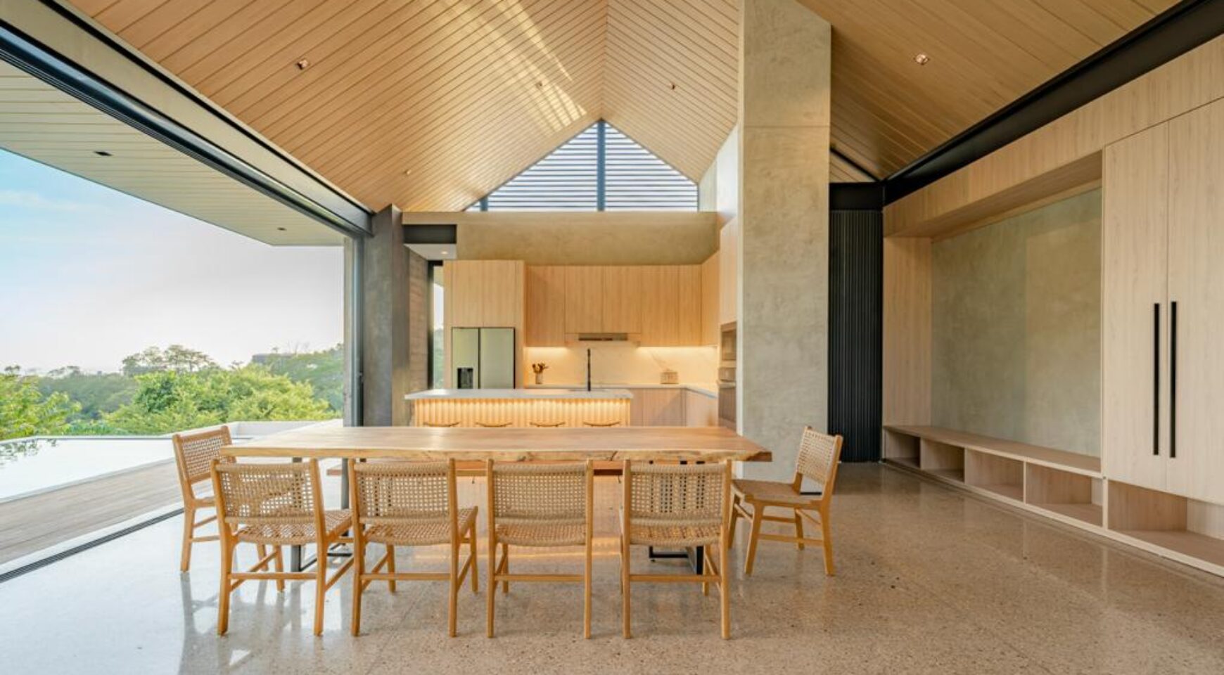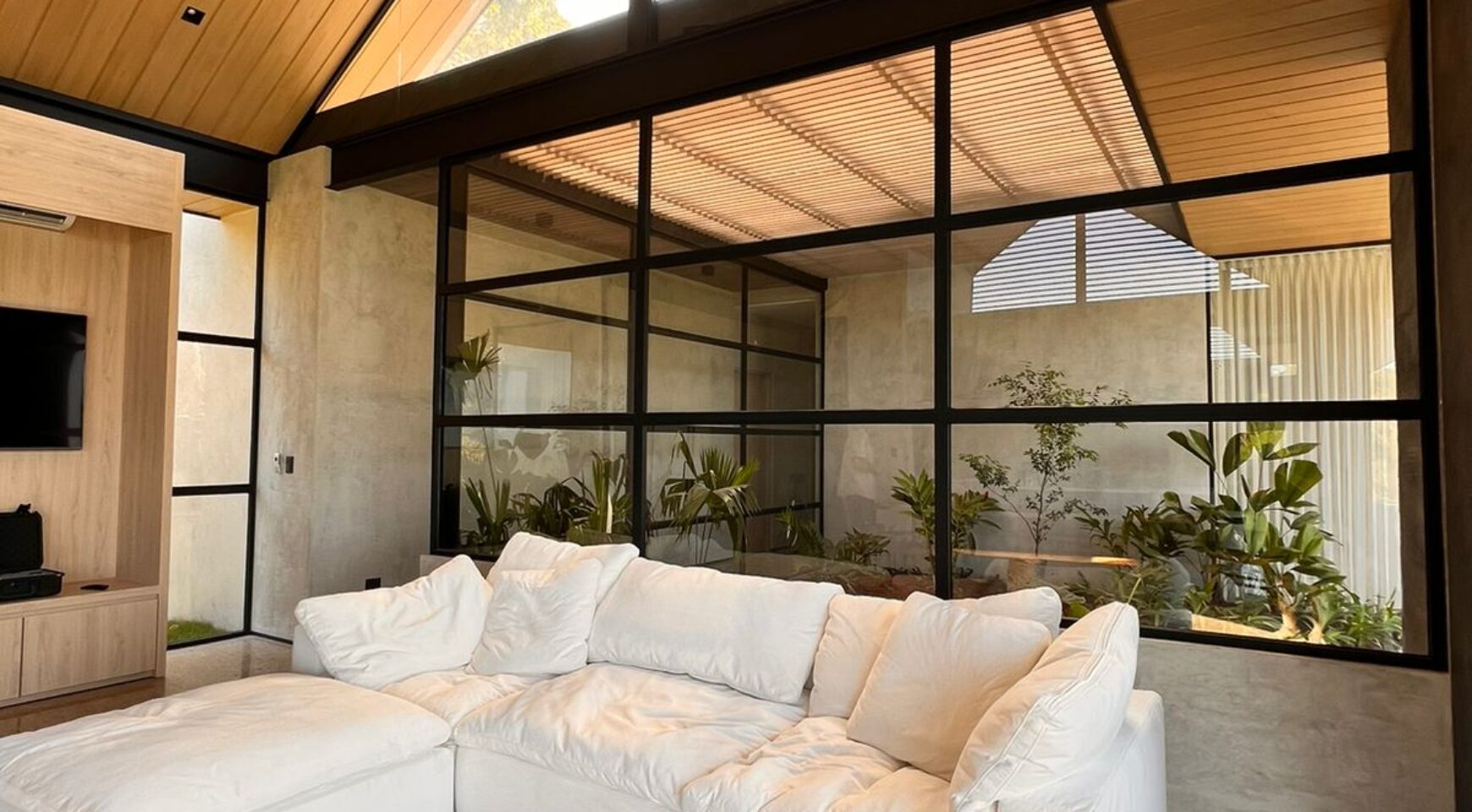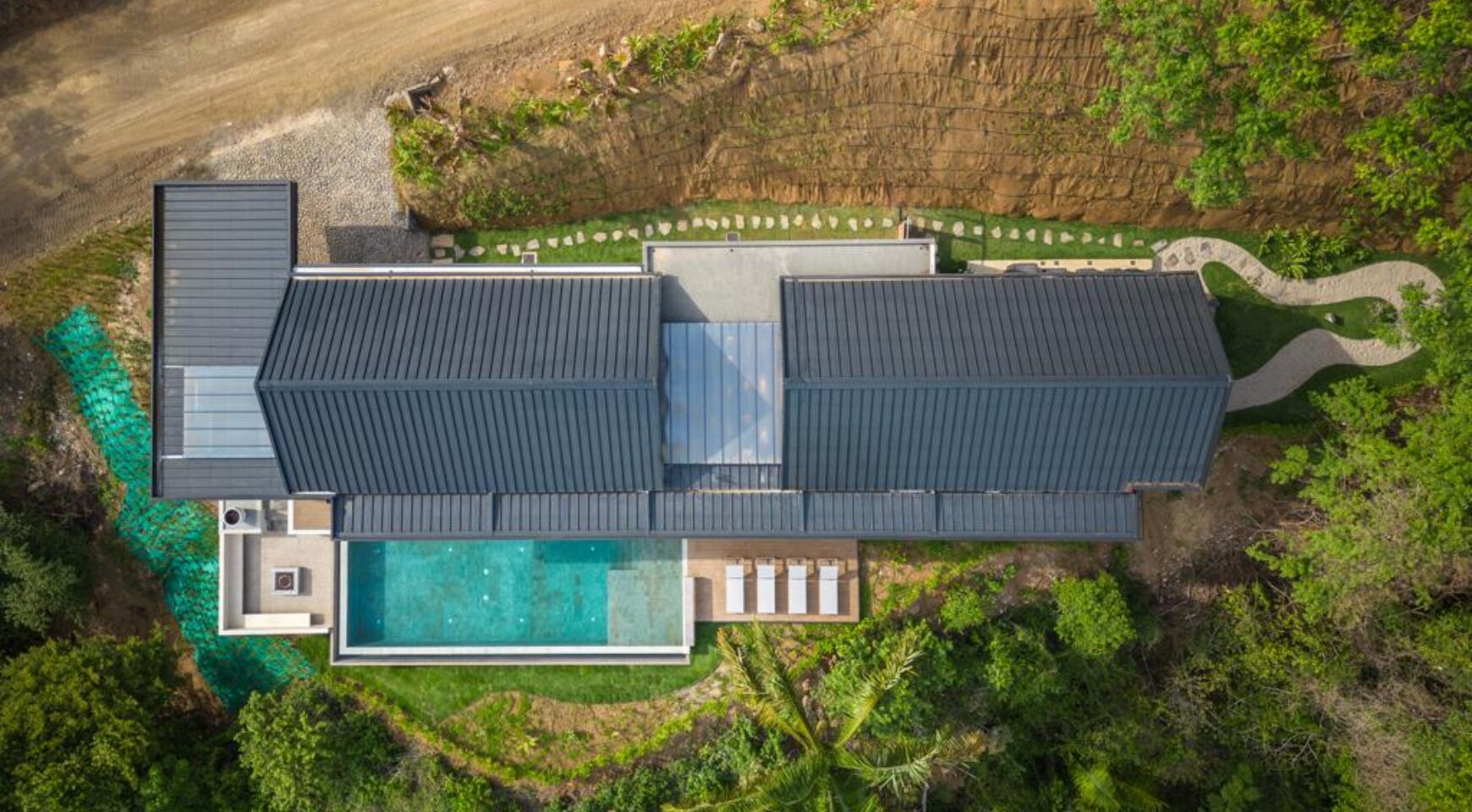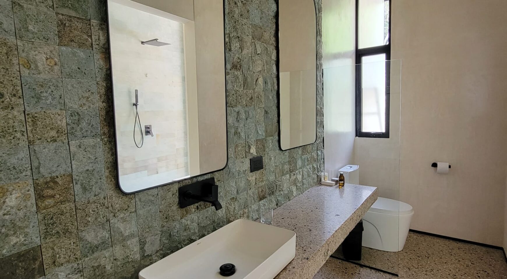 We are so excited to share this GORGEOUS brand-new home, designed and built by Architect, Mario Vargas. Created to blend nature and beauty with stunning views of the Cerro Valley and Pacific Ocean from all the rooms. The entire front of the house is glass and opens to a 30′ infinity pool, outdoor showers, and inset firepit area. The beautiful exterior gardens invite guests to be part of nature as they relax in luxury. Enjoy the interior garden courtyard while you swing in the hanging wicker chair and feel the gentle breezes or relax in the sun loungers on the pool deck.