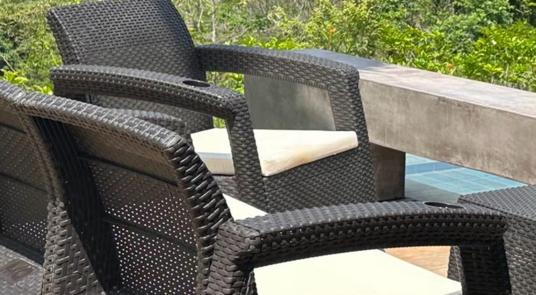 Please be sure to read the Safety Concern Section. This house is on a mountain with rough terrain and unimproved roads. This is why we recommend 4×4 vehicles to travel the coastal /mountain roads. Many people live on the road and travel the road regularly with no problem. The house sits on the side of the mountain with an unprotected steep drop. Children and pets should always be supervised. by an adult. The pool is not gated but we have provided a pool alarm system that can be turned on/off as needed.